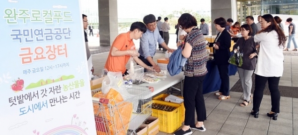 국민연금 지역농산물 직거래장터는 매주 금요일 낮 12시부터 오후 6시까지 운영한다.