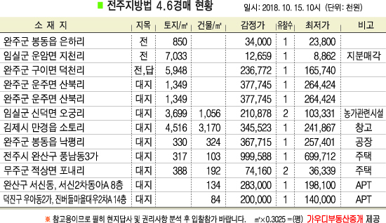 △무주군 적상면 포내리(주택)= 본 건은 괴목초등학교 남동측 인근에 위치하며, 주변은 단독주택과 농경지 등으로 구성된 지방도주변 농촌지대이다.