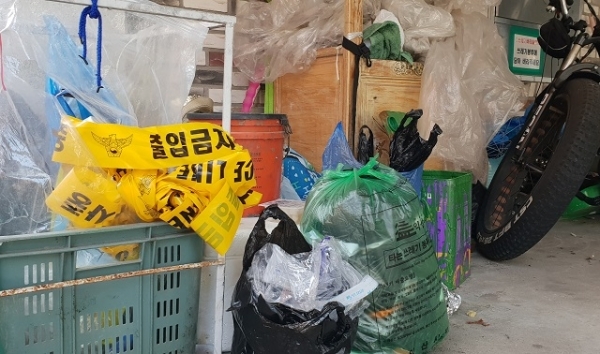 이튿날 오전 8시 20분께 쓰레기를 수거하려던 환경미화원이 이를 발견하고 경찰에 신고했다.