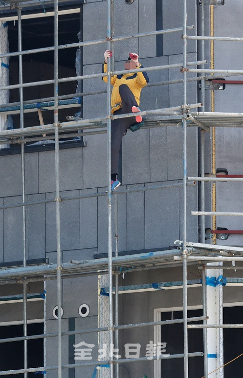 11일 전주시 만성지구 건설 현장에서 한 인부가 안전모 등 안전장비를 갖추지 않은 채 작업을 하고 있어 안전이 우려되고 있다.