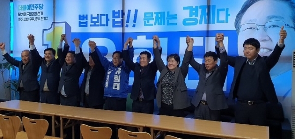 유희태 더불어민주당 완주진안무주장수 국회의원 예비후보는 지난 16일 완주군 봉동읍 선거사무실에서 송지용 전북도의회 부의장을 비롯해 최등원 완주군의회 의장 등 관계자 및 지지자들 300여명이 모인 가운데 경선준비 확대 전략회의를 가졌다.