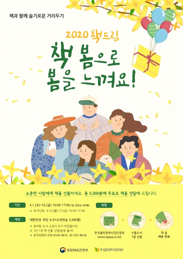 문화체육관광부는 한국출판문화산업진흥원(원장 김수영)과 함께 4월 한 달간 전자책, 소리책(오디오북), 종이책을 무료로 제공하는 ‘책과 함께 슬기로운 거리두기’ 행사를 개최한다고 밝혔다.