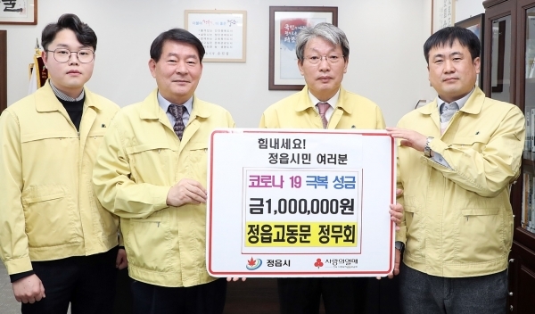 정읍시청 정읍고등학교 동문 모임 ‘정무회’(회장 박종일)는 9일 코로나19 극복을 위한 성금 100만 원을 기탁했다.