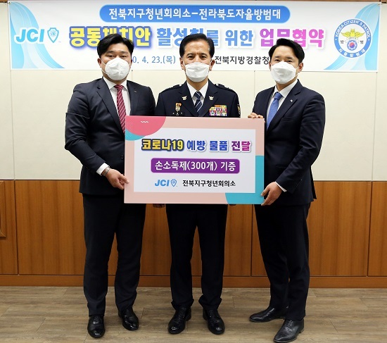 전북지방경찰청은 23일 전북지구청년회의소(회장 최광호) 및 전라북도자율방범연합회(회장 경세광) 등과 함께 전북의 공동체치안을 위해 상호 협업과 안전한 전북을 만들기 위한 업무협약을 체결했다고 밝혔다.