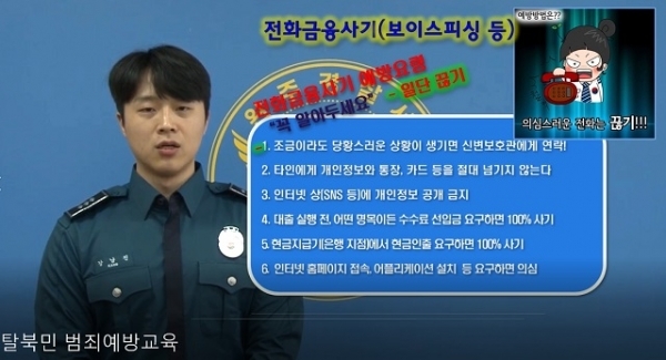최규운 완주서장은 “코로나19 지역사회 확산 차단 및 사회적 거리두기의 일환으로 대면 접촉을 자제하고 있는 시점에서 범죄예방교육을 받지 못한 탈북민들이 영상 시청을 통해 범죄피해를 예방 할 수 있길 바란다”고 말했다.