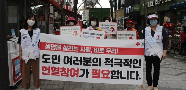 전북혈액원은 지난 12일 6.14 세계헌혈자의 날을 기념하고 코로나19로 어려워진 혈액 수급 상황을 알리기 위해 헌혈자들에게 감사 메시지를 전달하는 캠페인을 실시했다. 캠페인은 헌혈의 집 고사동 센터 인근에서 진행됐다.