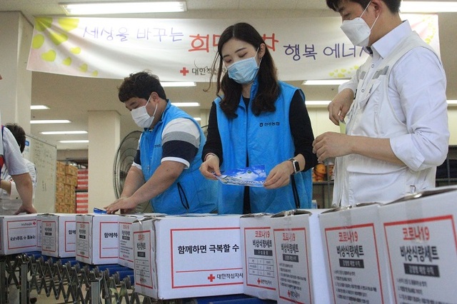 이날 제작된 긴급구호품 500세트는 즉석밥, 즉석식품, 홍삼액 등으로 구성되며 이 중 즉석식품은 전주농업협동조합의 기부금으로 마련됐다.