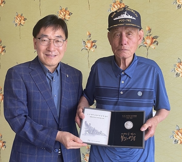 이번 감사 메달은 지난 6월 6·25전쟁 70주년 지방 기념식을 통해 전수될 예정이었으나 코로나19 여파로 기념식이 취소됨에 따라 전북서부보훈지청 최 지청장이 군산·익산지역 거주 참전유공자 자택를 직접 찾아가 감사메달 전수에 나서게 됐다.