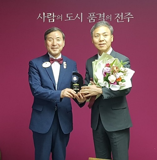 박병익 국제라이온스협회356-C지구 총재는 10일 전주시청을 방문해 김승수 전주시장에게 감사패를 전달했다.