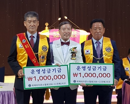 취임식 자리에서 최정만 신임 회장과 조규영 제1 부회장은 봉사기금으로 각각 100만원을 기탁했다.