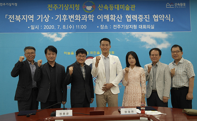 전주기상지청(지청장 정종운)은 지난 8일 산속등대미술관(대표 원태연)과 협업으로 기상기후사진전 공동 개최 등을 위한 업무협약을 체결했다고 밝혔다.