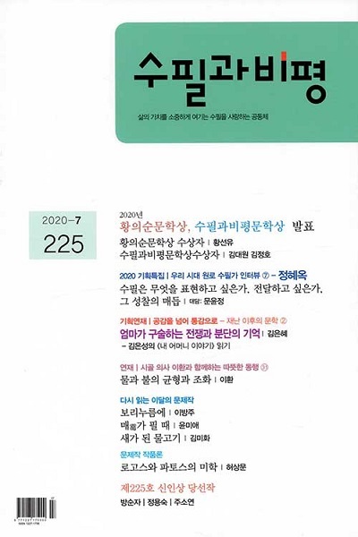 월간 문예지 <수필과 비평> 이 2020년 7월호로 통권 제225호를 발행했다. 수필과>