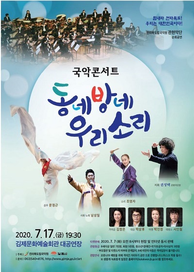 코로나19로 지친 몸과 마음을 위로하기 위한 국악콘서트 ‘동네방네 우리소리’가 김제를 찾는다.
