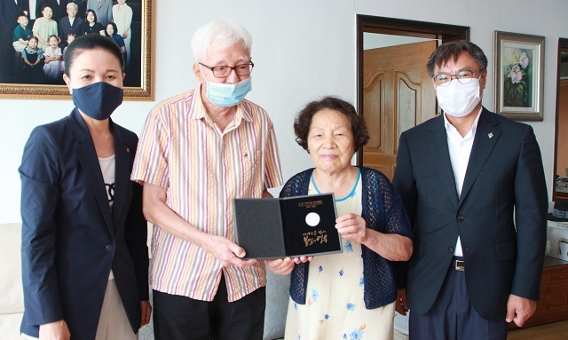 전북동부보훈지청은 지난 17일 6·25전쟁 70주년을 맞아 사랑의 열매 전북 사회복지공동모금회와 함께 6·25 참전유공자 문형주 옹(89세) 댁을 방문해 감사 메달을 전달했다고 19일 밝혔다.