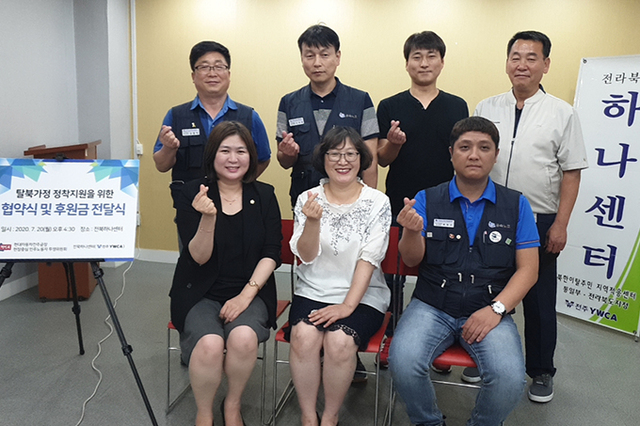 현대자동차 전주공장 현장중심 민주노동자 투쟁위원회(이하 현민투, 위원장 류명곤)와 전북하나센터(센터장 조미영)가 지난 20일 탈북가정 정착지원을 위한 협약식을 열고 후원금 100만원을 전달했다.