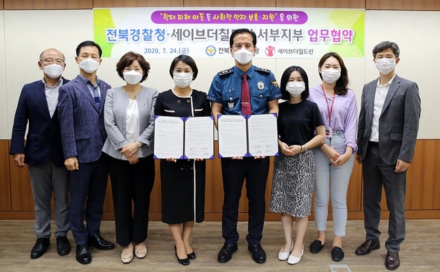 전북지방경찰청은 지난 24일 세이브더칠드런 서부지부와 아동학대 및 범죄피해자 등 사회적 약자 보호·지원을 위한 업무협약을 체결했다.