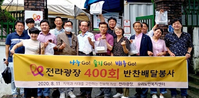 전라광장(손광진 회장)이 지난 2012년부터 시작한 ‘사랑의 반찬배달 봉사’가 11일자로 400례를 돌파했다.