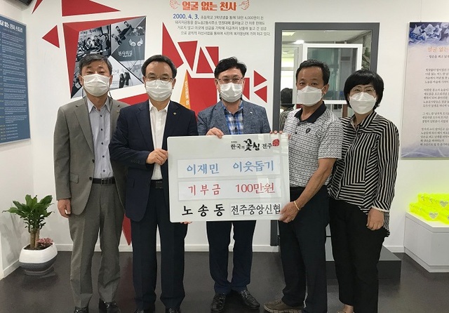 전주 노송동 천사마을에 위치한 전주중앙신협(조합장 한경희)이 이번 집중호우로 피해를 입은 지역민들을 위해 써달라며 기부금 100만 원을 노송동주민센터(동장 정문구)에 26일 기탁했다.