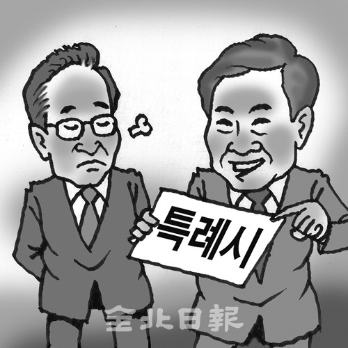 김 시장은 특례시 지정을 위해 시도지사협의회를 설득하겠다고 밝혔지만 쉽지 않아 보인다. 협의회 회장인 송 지사가 이미 모아진 시도지사들의 의견 번복에 적극 나설지도 미지수다. 결국 전주특례시 지정 문제는 향후 도정 원팀 협력과 지방선거 과정의 이슈로 이어질 가능성도 배제할 수 없어 보인다. 앞으로 진행될 국회의 특례시 법안 처리 과정이 주목되는 이유다. /강인석 논설위원