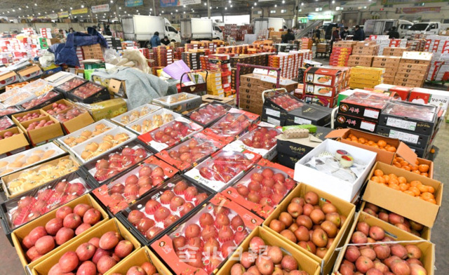 민족 대명절인 설을 앞두고 1일 전주시 송천동 농수산시장에는 제수용 및 선물용 과일들이 출하돼 소비자를 기다리고 있다.