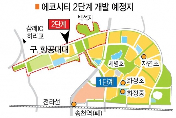 당초 에코시티 2단계 개발사업은 항공대대 이전 후보지 선정으로 인해 지연됐으나 지난해 말 항공대대가 도도동으로 이전하면서, 사업이 궤도에 오를 수 있게 됐다. 전주시와 국방부간 기부 대 양여 절차에서 시는 항공대대 시설 이전과 기부를 완료했고, 국방부의 부지 양여와 개발 착공을 앞둔 상황이다.
