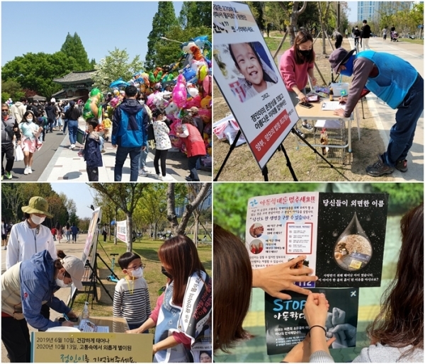 대한아동학대방지협회(대아협) 회원으로 활동하고 있는 김승희 씨(41·완주)는 “매주 대아협 회원들과 세병호·기지제 공원에 나가 정인이 사건 가해자에 대한 엄벌 서명운동을 진행하고 있다”며 “평일에는 버스정류장과 시내 주요 상점에 허락을 구하고 아동학대방지 포스터를 붙이고 있는데 이렇게라도 해야 우리 아이들을 위한 책임을 다 하는 거라고 생각한다”고 말했다.