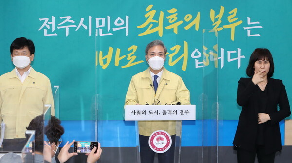 김승수 전주시장은 25일 시청 브리핑룸에서 긴급 브리핑을 열고 “강력한 방역조치에도 불구하고 최근 코로나19의 확산세가 급증하는 추세”라며 “지금 당장 확산세를 막지 못하면 더 큰 피해로 이어질 것이 분명한 상황인 만큼 오는 27일 0시부터 2주 동안 사회적 거리두기를 4단계로 격상한다”고 밝혔다.