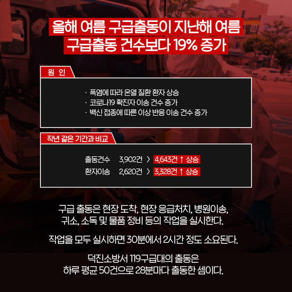 [카드뉴스] 전주덕진소방서, 올 여름 하루 평균 50건 구급 출동…28분 당 1번 꼴