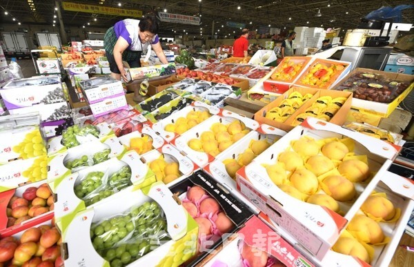 민족 최대의 명절인 추석이 보름 앞으로 다가왔지만 코로나19로 함께하지 못하는 친지나 지인들에게 보낼 선물용 과일이 출하돼 6일 전주시 송천동 농수산시장에서 한 상인이 과일을 진열하고 있다.