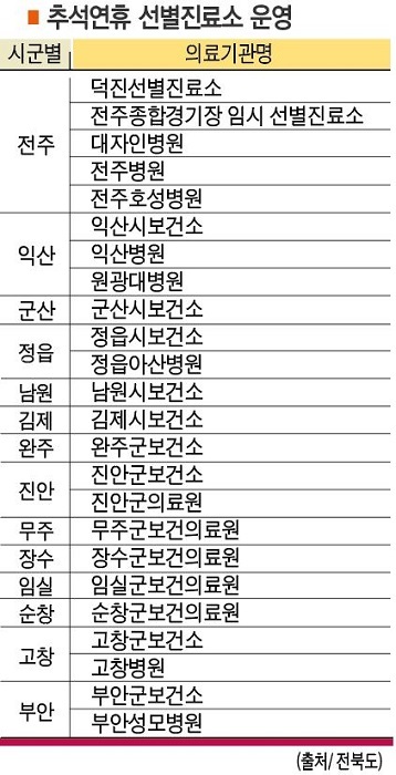 또 전라북도의사회, 치과의사회, 한의사회, 약사회와 더불어 각 시·군별로 병·의원, 약국, 보건소(지소, 진료소) 등 비상 진료기관을 지정해 운영할 계획이다.