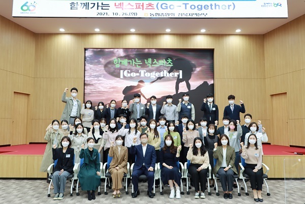 전북농협(본부장 정재호)은 26일 농협전북본부 대회의실에서 지난 해 12월 신규 입사한 농축협 직원 50여명이 참석한 가운데 ‘함께가는 넥스퍼츠(Nexperts) Go Together’행사를 가졌다.