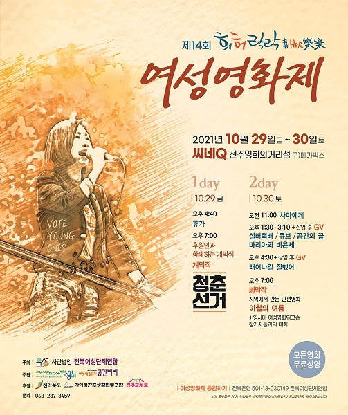 전북여성단체연합이 10월 29일부터 30일까지 이틀간 전주 씨네 Q(구 메가박스)에서 ‘2021 제14회 희허락락 喜.Her.樂.樂 여성 영화제’를 개최한다.