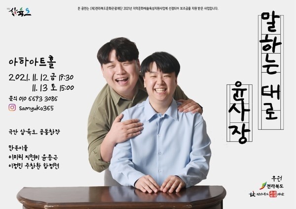 극단 삼육오가 오는 12일부터 13일까지 이틀간 아하 아트홀에서 창작극 <말하는 대로 윤 사장> 을 펼친다. 말하는>