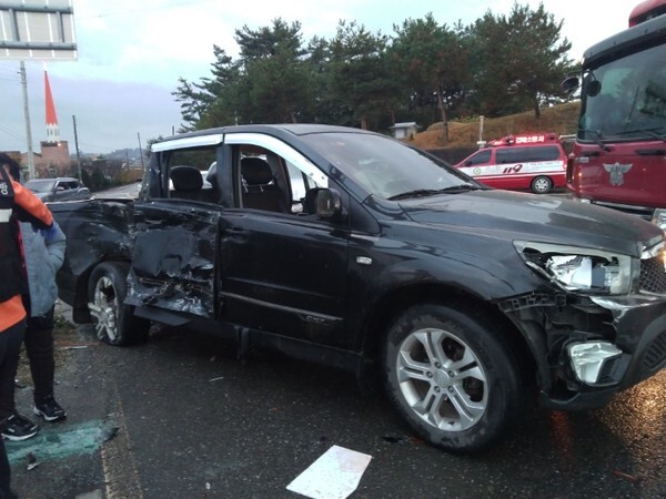또 승합차에 타고 있던 B씨(90)가 중상을 입어 병원에서 치료를 받고 있다. 세 차량에 타고 있던 운전자 등 11명도 경상을 입은 것으로 전해졌다.