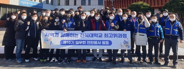 전북대학교 최고위과정(ACE) 제10기 원우회가 지난 18일 지역 소외계층을 찾아 사랑의 연탄 나눔 봉사활동을 벌였다.