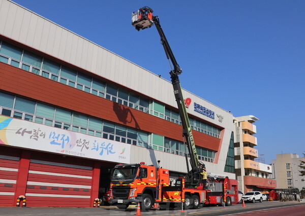 신규 굴절사다리차는 기존 굴절사다리차 작업 높이(27m)보다 약 9m 높아진 36m로 12층 높이까지 전개할 수 있으며, 원격조종으로 무인 방수가 가능하다.