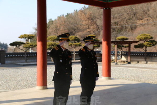 전주완산경찰서(서장 박헌수)는 임인년을 새해를 맞아 3일 전주시 완산구 교동에 위치한 낙수정 군경묘지에서 충혼탑 신년참배를 실시했다.