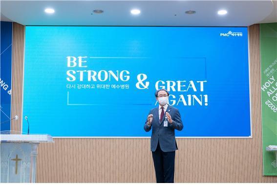 김철승 병원장은 이날 ‘다시 강대하고 위대한 예수병원’을 대대적으로 선포했다. 또 비전 실현의 밑바탕이 될 2022년도 예수병원의 미래의 청사진을 직원들에게 명확하게 전달해 목표의식도 함께 부여 했다.