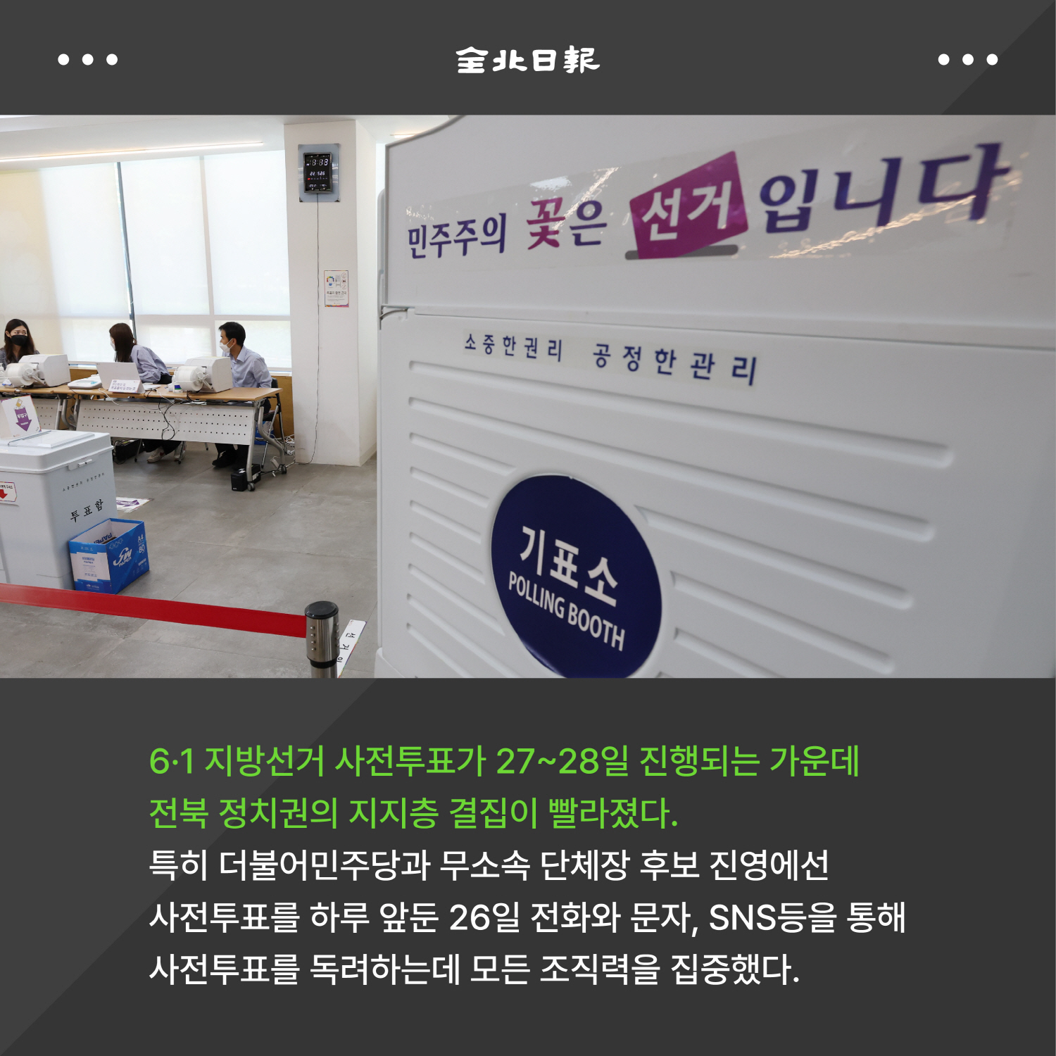▶ 26~27일 사전투표 기세에 따라 6월 1일 본 선거 영향 관측 ▶ 민주당·무소속 후보진영 모두 “투표장 나가야 이긴다”독려