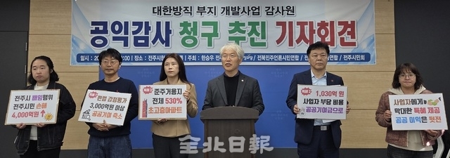 시민단체는 “전주시가 용도지역 변경 전·후 토지 가격을 평가하는 감정평가를 편법으로 해 3000억 원의 공공기여량을 축소했다”고 주장했다.