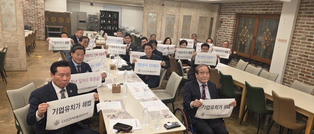 전북애향본부는 지난 14일 전주시내 한 음식점에서 이사회를 열고 청년 일자리 확충과 정주 환경 개선을 위한 결의대회를 진행했다. 윤석정 총재와 김금석 수석이사 등 임원진은 “전북의 청년 이탈 인구가 연간 8천 명에 이른다”며 ‘기업유치가 해법’, ‘청년이 미래다’라는 문구가 적힌 플래카드를 펼치는 퍼포먼스를 벌였다.