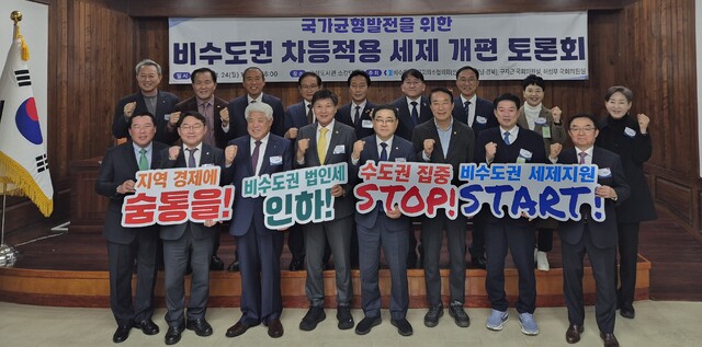 비수도권 기업의 조세 부담을 완화하기 위한 차등적용 세제 개편 필요성이 국회에서 다시 제기됐다. 전북·전남·경북·경남 상공회의소 협의체가 공동으로 연 ‘비수도권 차등적용 세제 개편안 토론회’에서 지역 경제침체와 수도권 집중이 심화되는 현실을 반영한 새로운 세제 구조가 필요하다는 의견이 쏟아졌다.