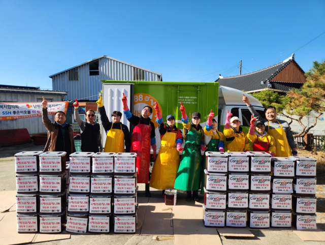 이어 사회복지협의회 임직원 13명과 자원봉사자 3명 등 총 16명이 배추 수확부터 절임, 버무림까지 김장 전 과정을 직접 진행했다.