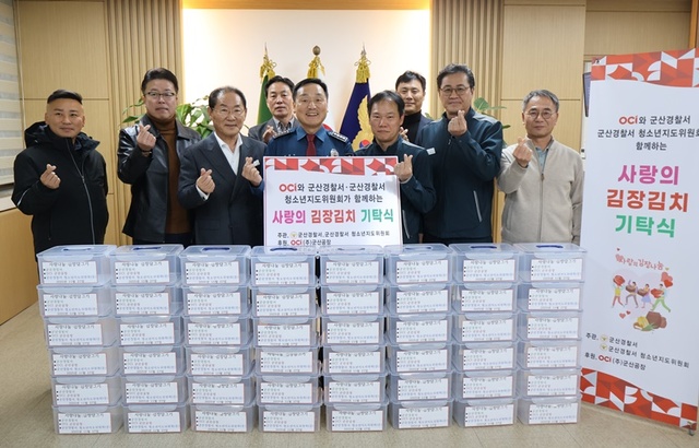 군산경찰서(서장 김현익)는 27일 청소년지도위원회(회장 유복근)•OCI군산공장(공장장 심재엽)과 함께 경제적 어려움을 겪고 있는 소외계층 청소년을 위한 김장김치 나눔 행사를 진행했다.
