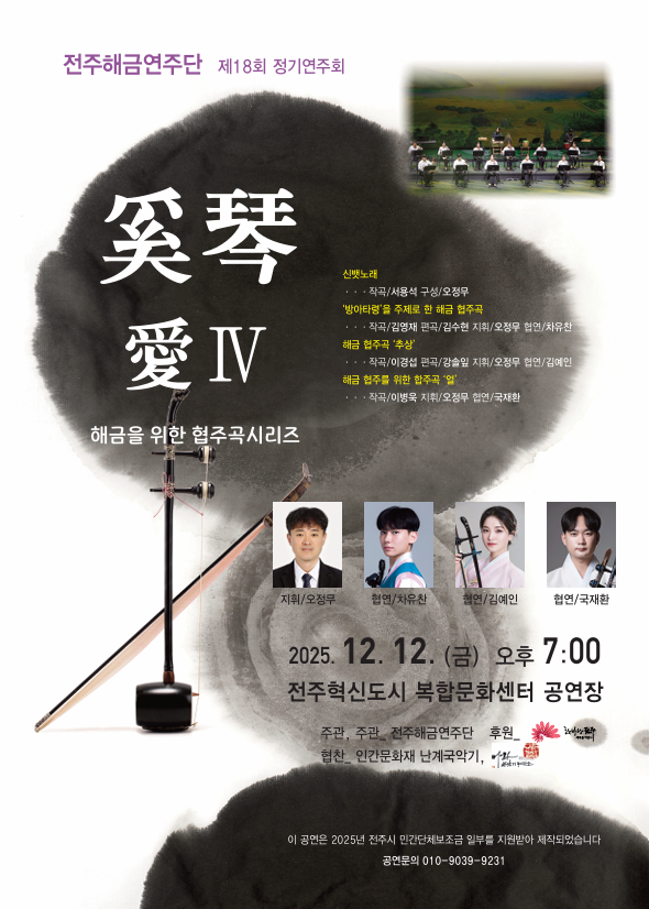 전주해금연주단이 12일 오후 7시, 전주혁신도시 복합문화센터 공연장에서 제18회 정기연주회 ‘奚琴 愛Ⅳ’를 연다.