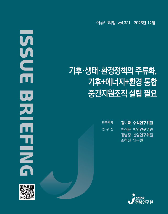 전북연구원은 지난 19일 제331호 이슈브리핑을 통해 정부의 기후에너지환경부 출범에 따라 에너지 전환과 환경 정책이 빠르게 추진될 것으로 예상된다며, 이에 대응하기 위한 ‘전북 특화형 통합 기후·에너지·환경 중간지원조직’ 구축 방안을 제시했다.