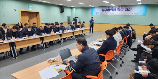 지난 2월 19일 익산예술의전당 세미나실에서 ㈜제일건설 부도에 따른 대책 마련 실무협의체 회의가 진행되고 있다. /사진=송승욱 기자