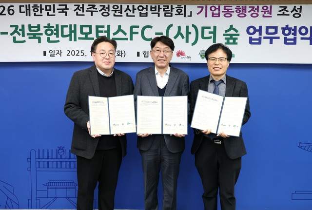 전북현대는 지난 23일 전주시청에서 전주시·사단법인 더숲과 2026 대한민국 전주정원산업박람회 기업동행정원 조성을 위한 업무 협약을 체결했다.