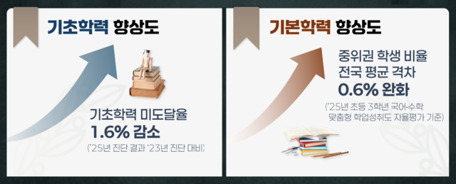 정책의 현장 실행력을 높이기 위해 2026년에는 초등 학력신장 선도학교 20개교를 운영한다. 선도학교는 ‘정책 적용형’과 ‘교과 집중형’ 두 가지 유형으로 추진된다. 정책 적용형은 학습플래너와 탐구노트, 중위권 교과보충 프로그램을 학교 교육과정과 연계해 운영하는 방식이다. 교과 집중형은 국어·수학·영어 중 한 과목을 선택해 집중적으로 운영하며, 학생의 교과 이해도와 교사 전문성을 함께 높인다.