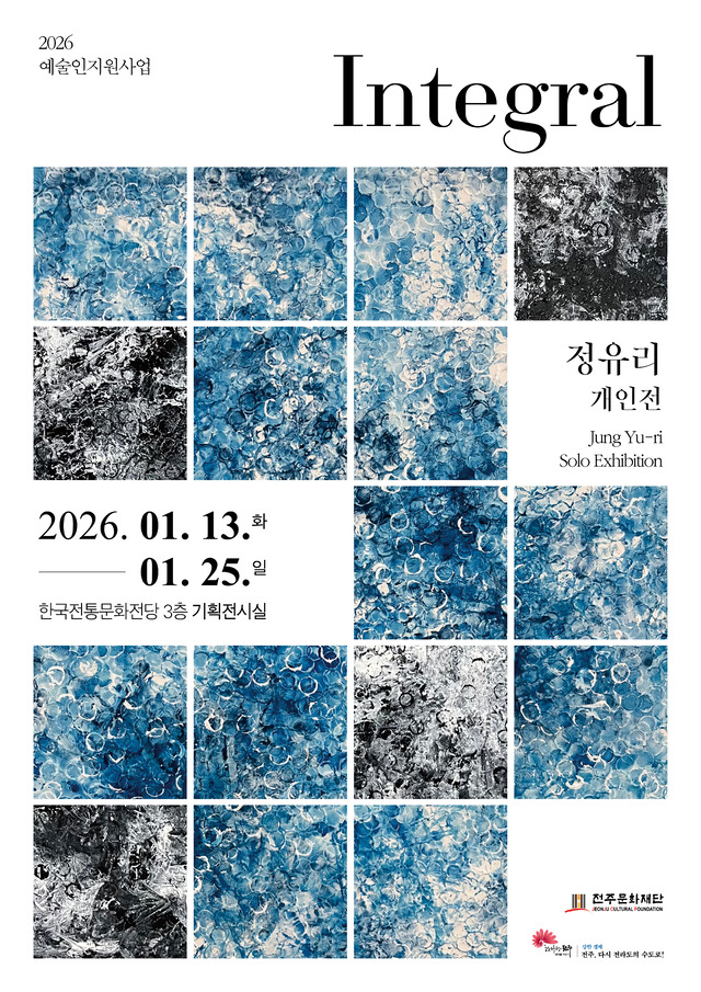 (재)전주문화재단의 2026년 예술인지원사업 기획전시 첫 번째 전시가 한국전통문화전당 3층 기획전시실에서 열리고 있다.
